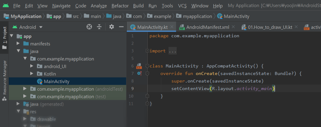 MainActivity 파일에 가서 실행 파일을 변경해주어야 한다.