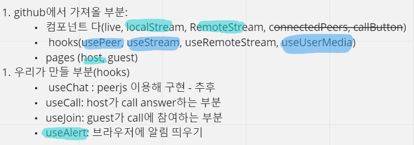 2. host와 guest 각각의 비디오 스트림을 서로 송출한다. function addVideo(stream) 함수를 만들고 4번 call을 보내고 답하는 과정에서 실행시킨다. stream 관련 코드는 몇 백줄이 넘어가서 여기에 다 넣기 어렵기 때문에 간단하게만 보고 넘어갈 예정이다.