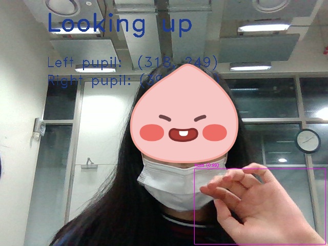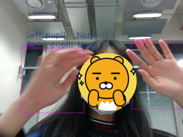 사진에서는 눈 인식도 동시에 되고 있는데 아이트래킹 딥러닝의 경우 1학기 때 이미 구현되었고 내 파트가 아니기 때문에 자세한 내용은 생략하고자 한다.