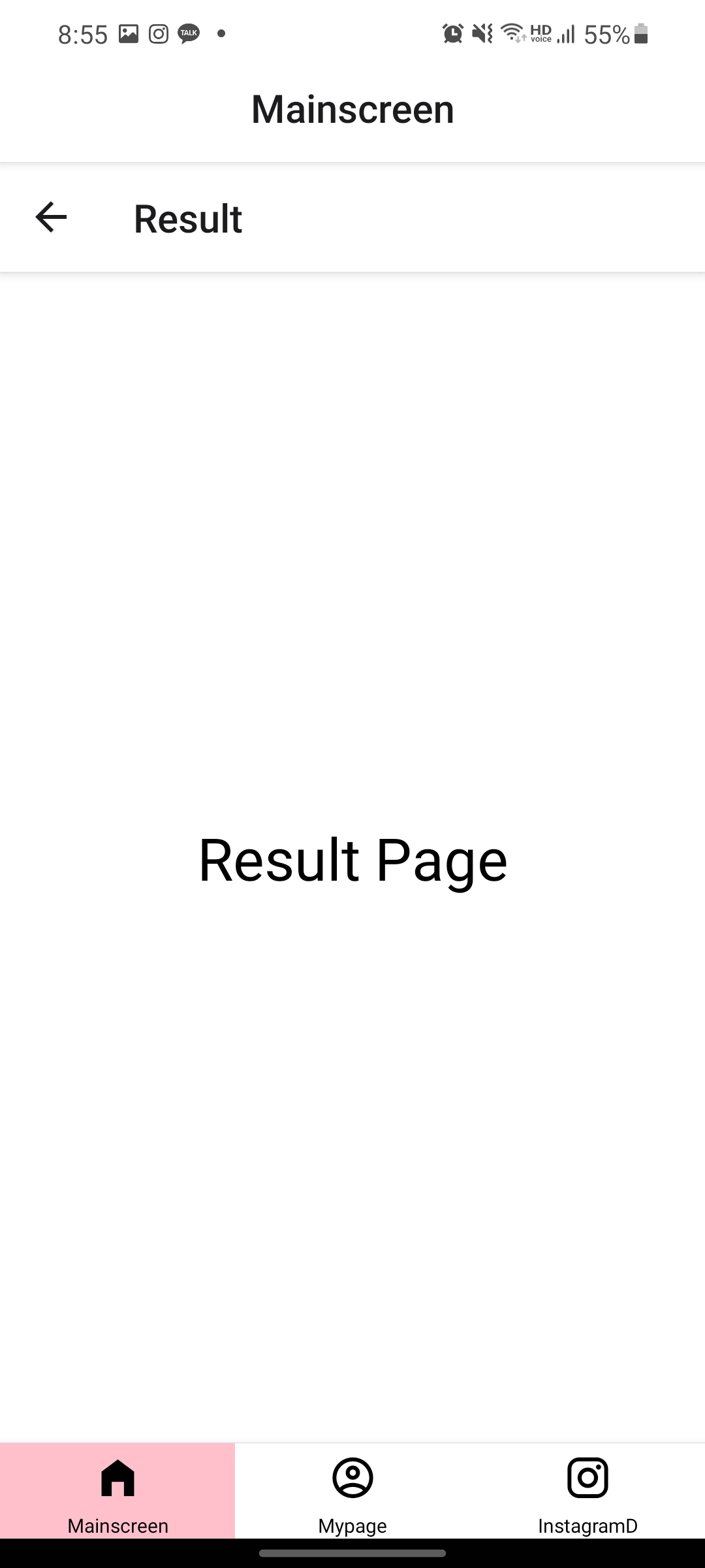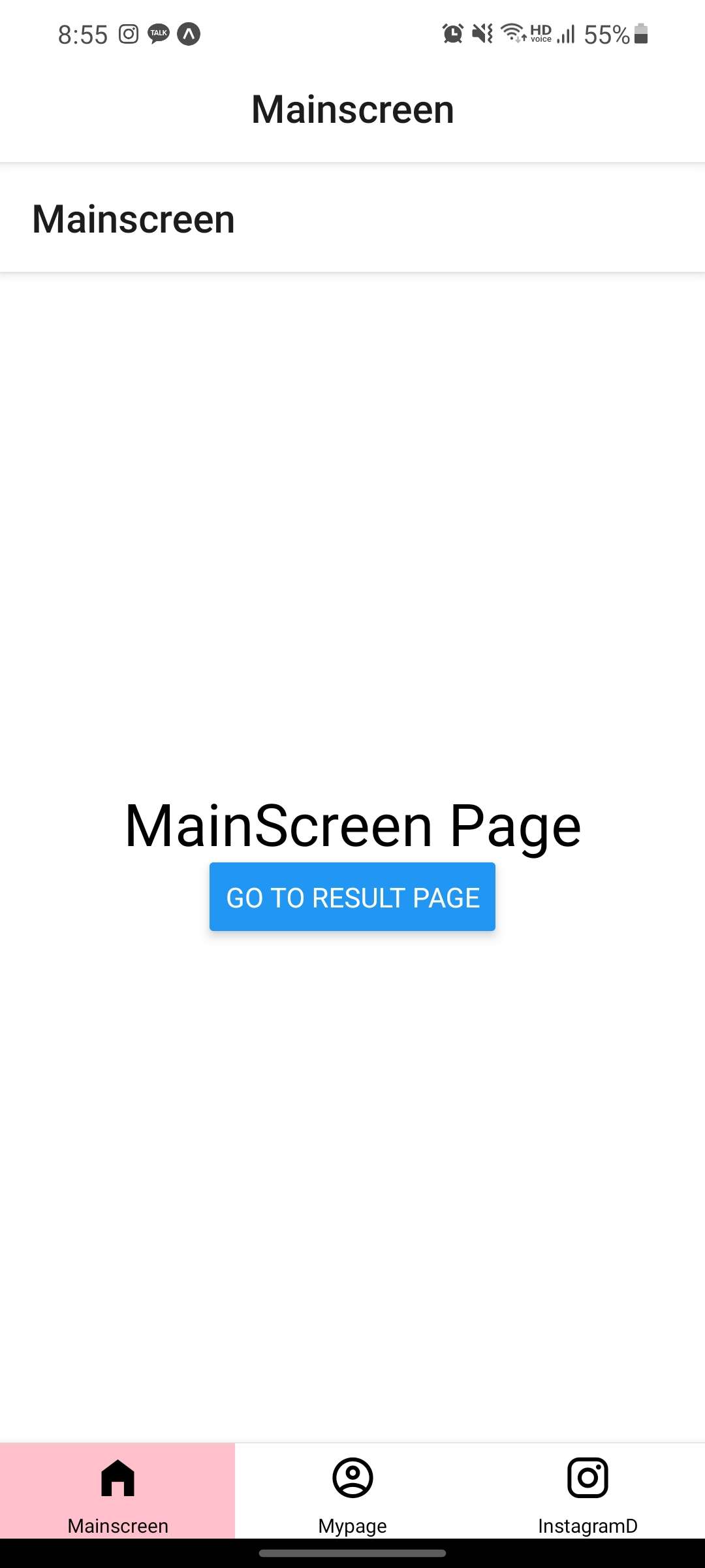 Mainscreen이 가장 먼저 나오고 버튼을 누르면 result 페이지로 이동하도록 설정할 것이다.